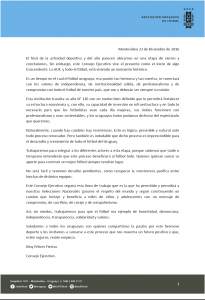El texto de la carta publicada por la AUF con motivo de Navidad y Finde Año dice así: