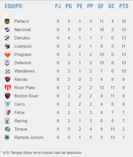 Finalizó la sexta fecha del Torneo Apertura del Campeonato Uruguayo 2018 y dejó como resultado a Peñarol como único líder.