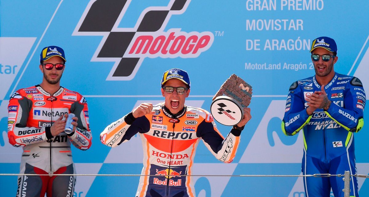 El actual campeón del mundo, Marc Márquez, quiere repetir título y está en camino de lograrlo. Esta vez venció en el Gran Premio de Aragón, carrera que fue la decimacuarta fecha del campeonato de Moto GP.