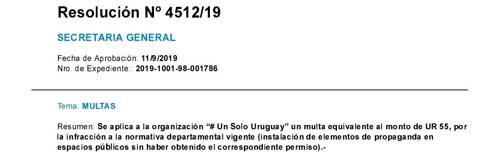 En tanto, Marcelo Nougué, integrante de Un Solo Uruguay dijo que el valor de la sanción es desproporcionado y entienden que hay una persecución al movimiento. En relación a las declaraciones del intendente capitalino, apuntó: “que diga cuántas multas están poniendo por los miles carteles y mugre que están dejando los políticos. Que lo compare con los 60 mil pesos que nos están cobrando a nosotros”.