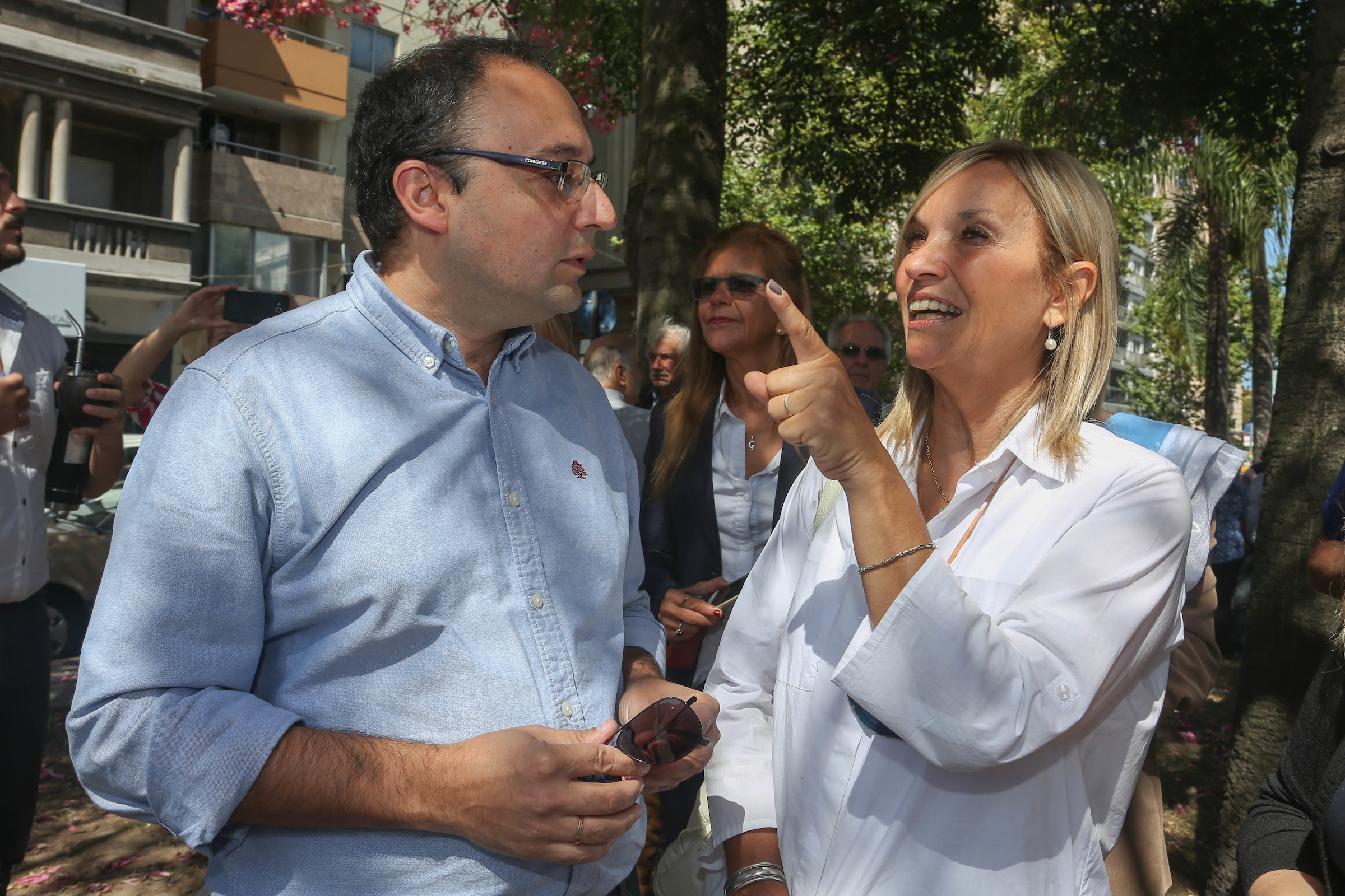 La vicepresidenta electa Beatriz Argimón participó del traslado, señaló que inicialmente se era el lugar que iba a ocupar y recordó que no puede estar alineado con el monumento de Gervasio Artigas.