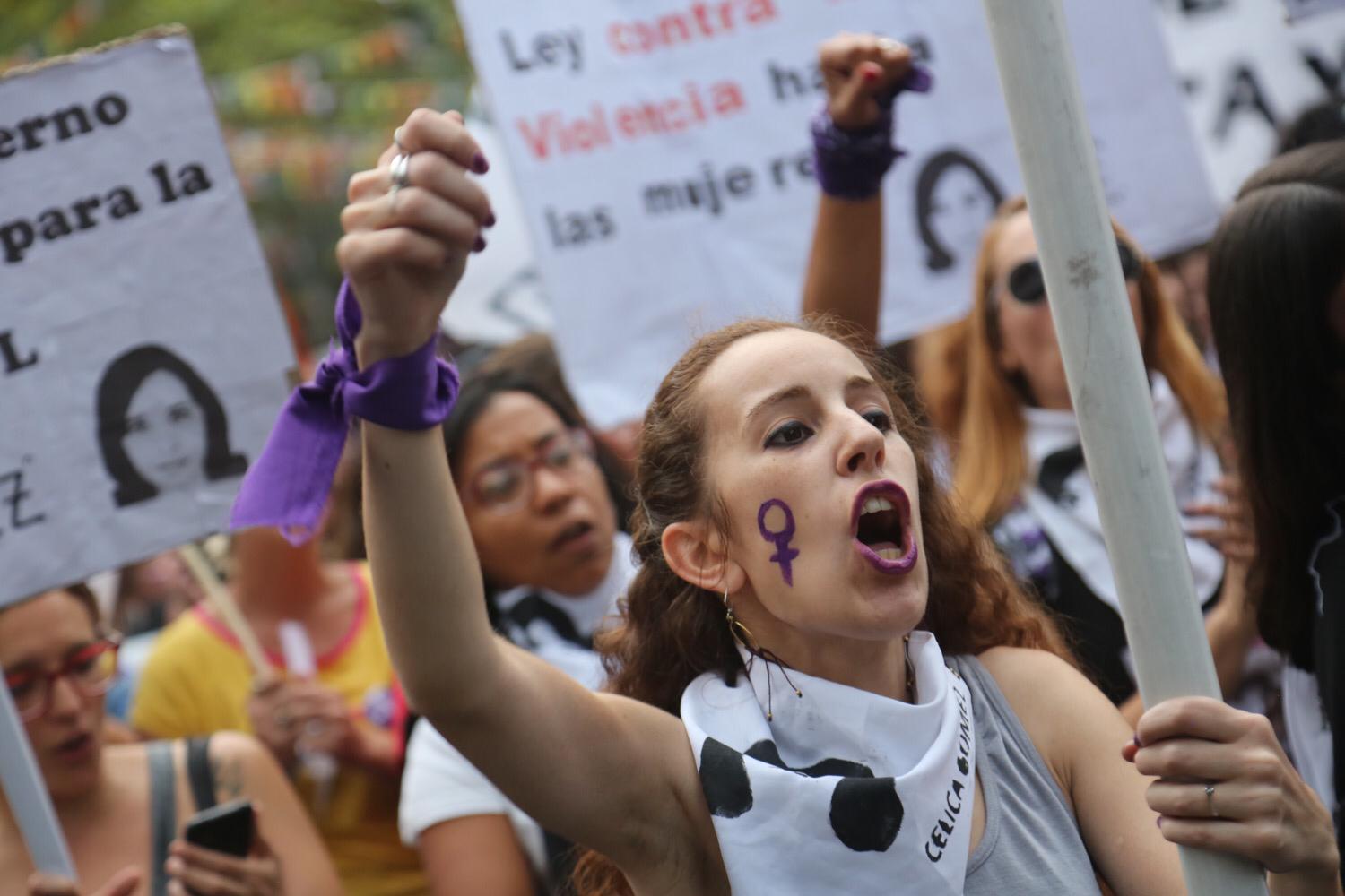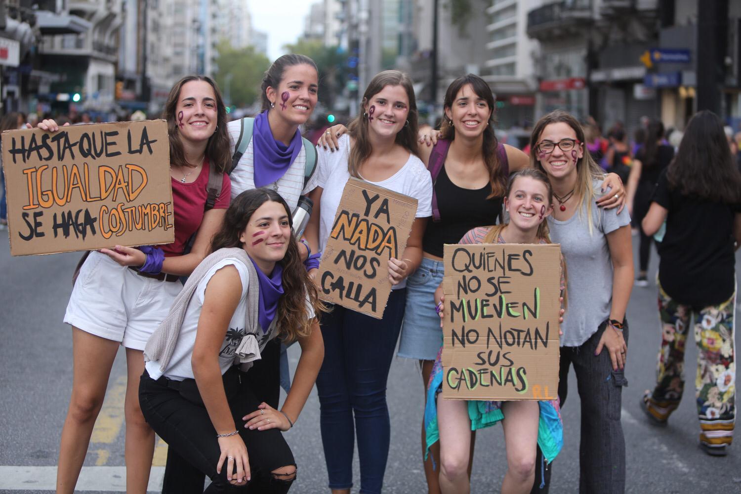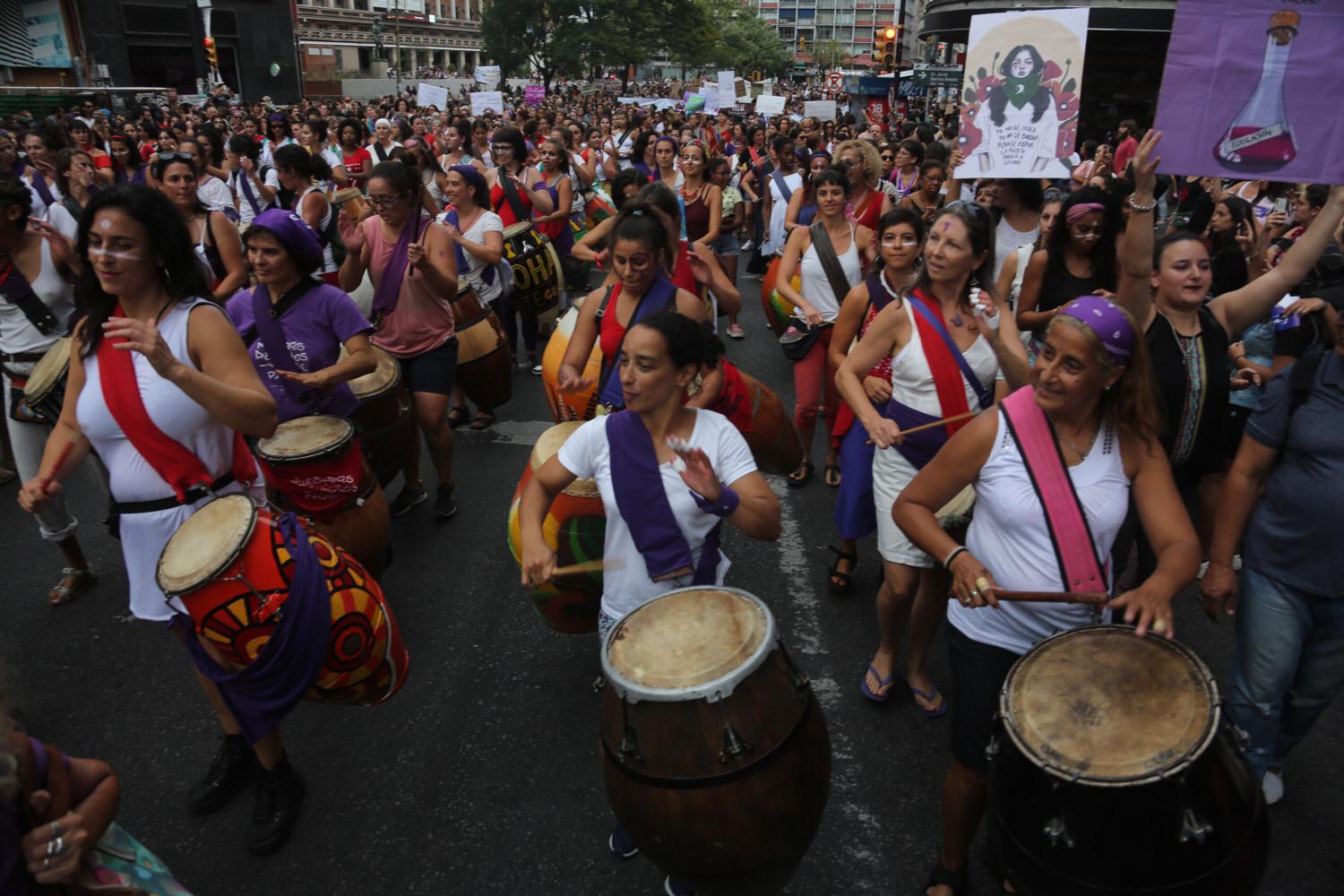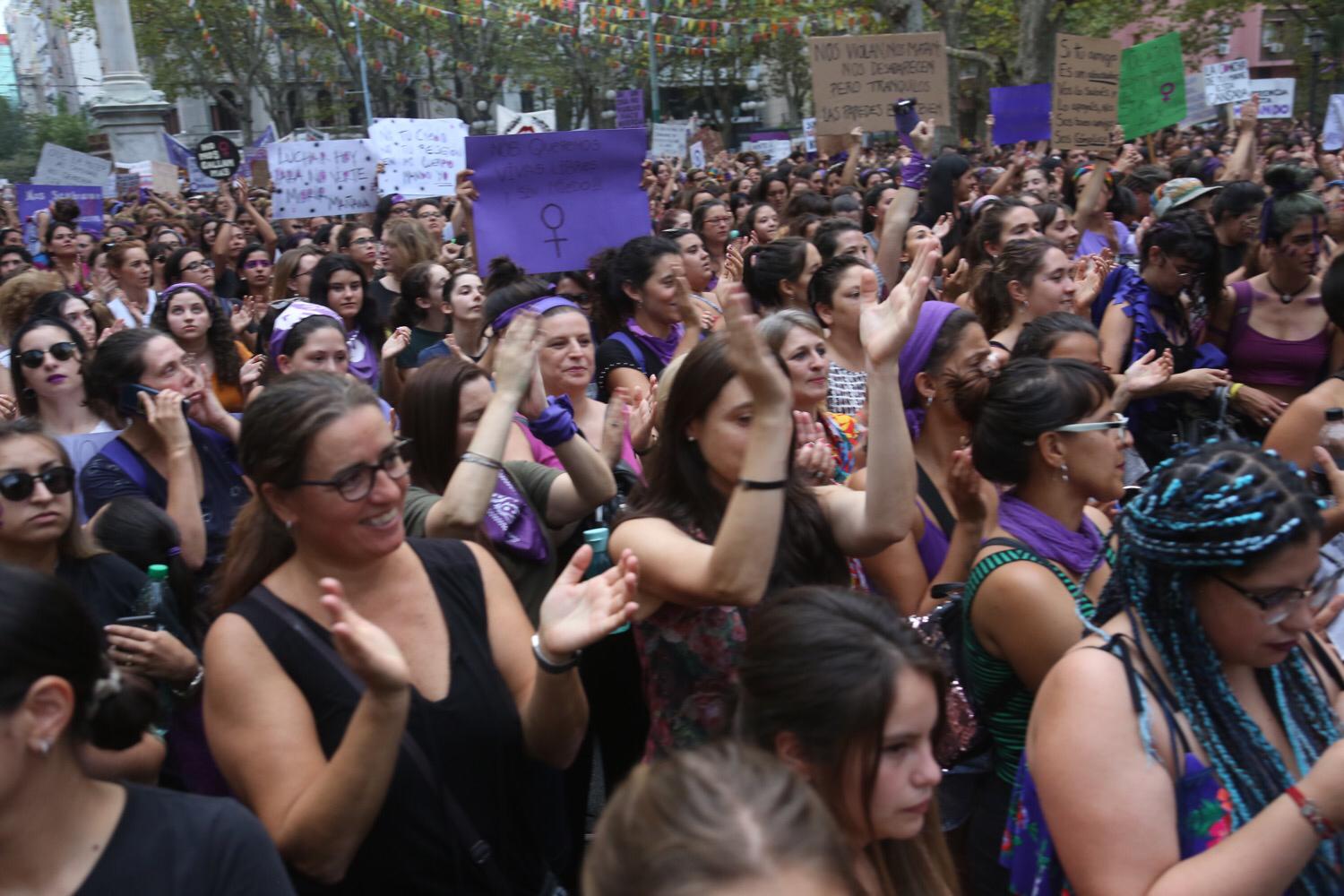 Miles de mujeres marcharon por 18 de Julio en Montevideo convocadas por los derechos de las mujeres y contra la violencia basada en género.