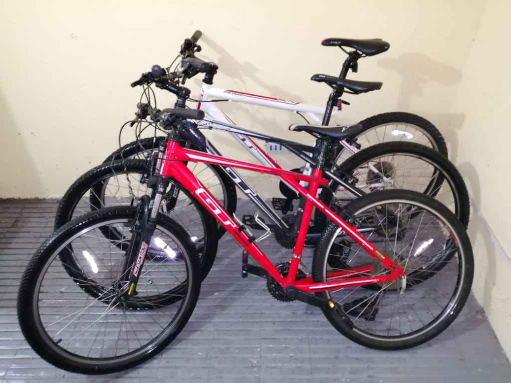 Había siete bicicletas montaña tipo GT y varios celulares.