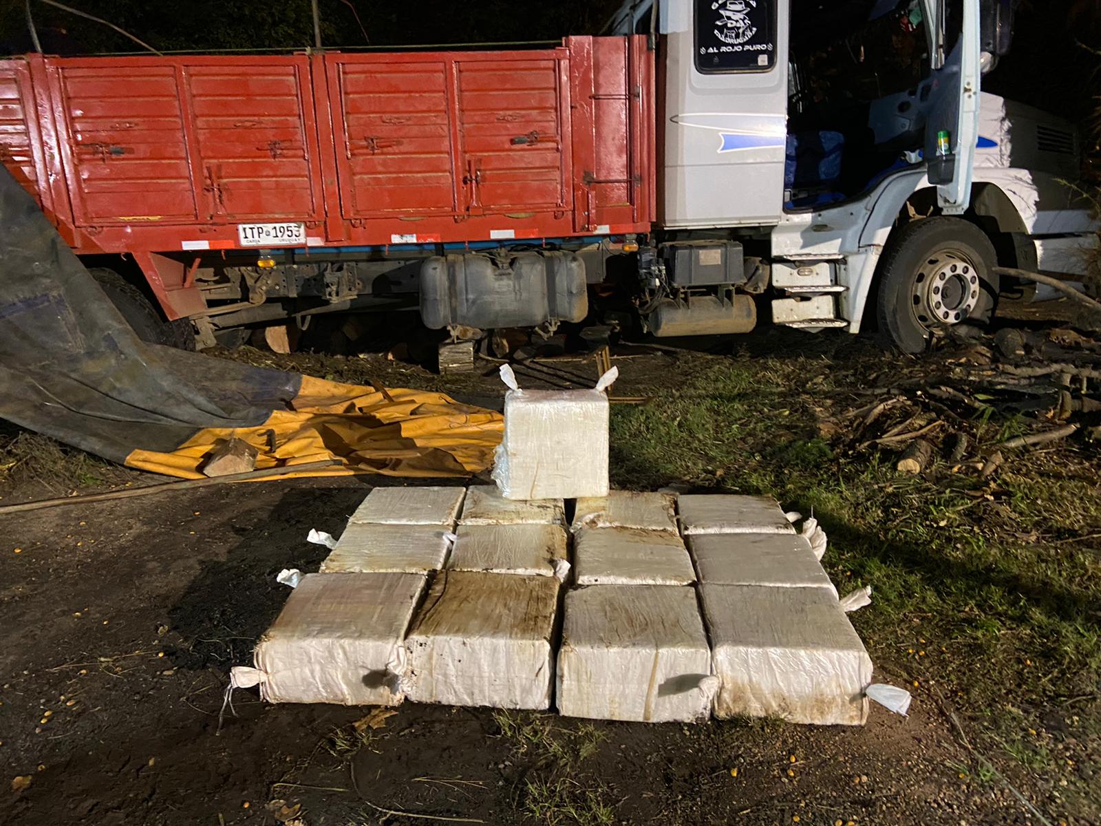 El camión fue detenido mientras circulaba en Jurisdicción Nacional, con 454 kilos de cocaína que, según estima el Ministerio del Interior, tienen un valor de U$S 3.400.000. Larrañaga le transmitió “respaldo” a la policía interviniente en esta incautación. El titular de Estado informó que la droga venía “encubierta” en un cargamento que simulaba ser de leña, tapada con una lona.