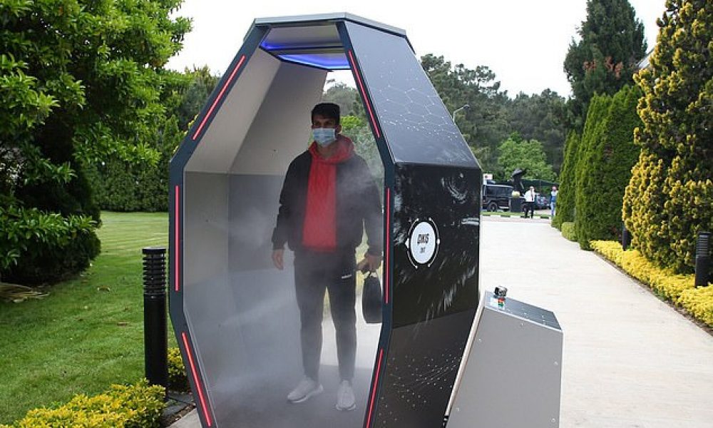 Lo que se viene , el Besiktas de Turqía instaló un gigantesco gabinete de desinfección en la entrada del campo de entrenamiento del club, los equipos de la Superliga turca comienzan a entrenar para la reanudación de la liga.