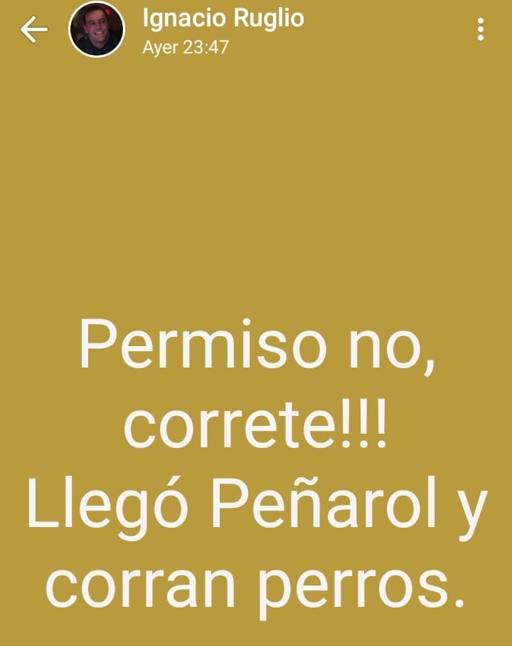 El presidente de Peñarol, Ignacio Ruglio, emitió en su estado de whatsapp, dos mensajes en los que se refirió por un lado a la clasificación ante Nacional en Copa Sudamericana a cuartos de final pese a caer en el Campeón del Siglo pese a caer por 1-0 y en el otro, un agradecimiento a Mauricio Larriera como entrenador por conseguir el objetivo.