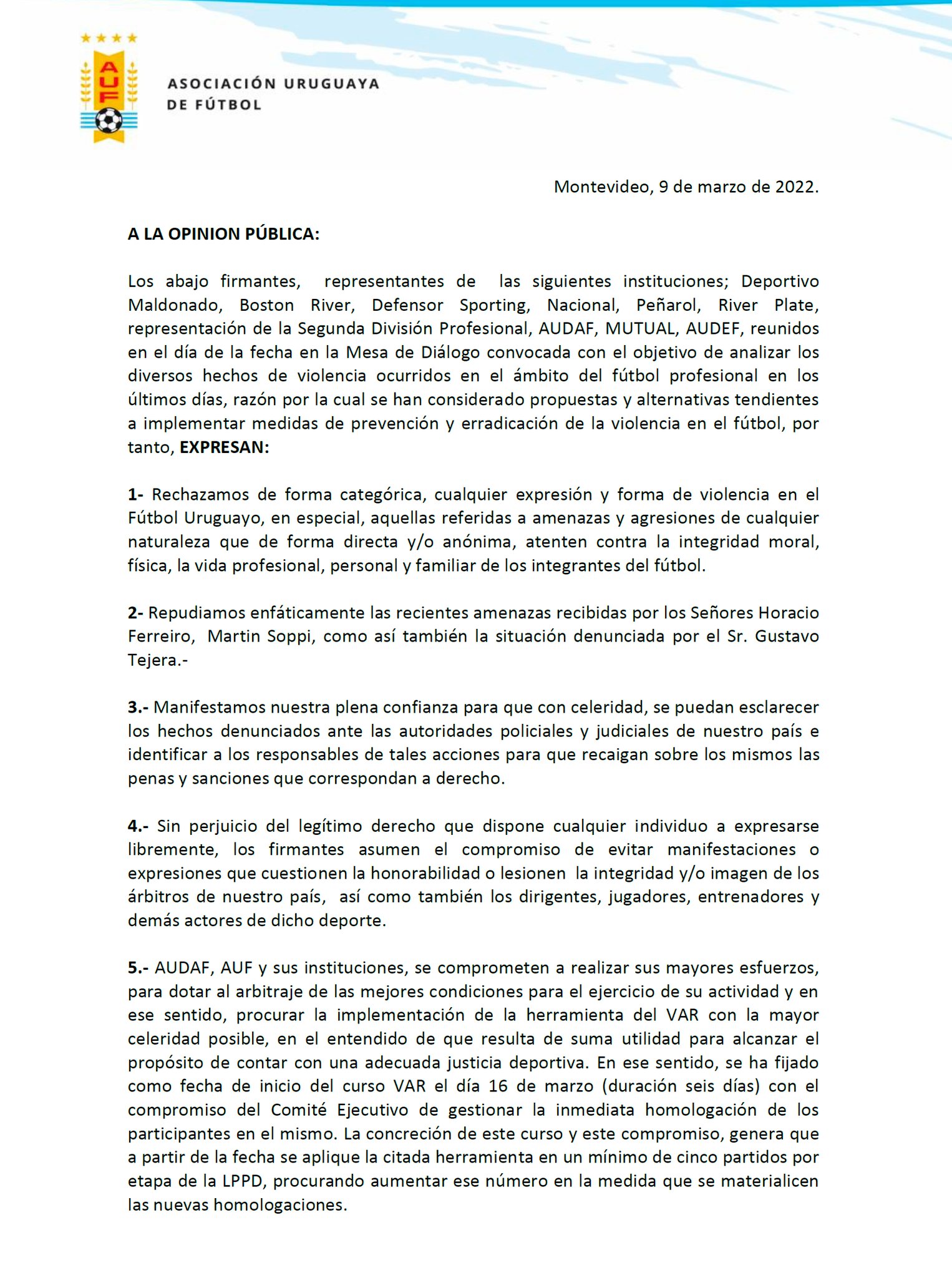 COMUNICADO DE LA AUF SOBRE LA REUNIÓN: