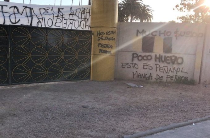 En lo previo al encuentro entre Peñarol y Wanderers por la undécima fecha del Torneo Apertura, de este domingo a la hora 19 en el Estadio Campeón del Siglo, aparecieron pintadas y trapos en la concentración aurinegra de Los Aromos, que de «forma agresiva» en su expresión, manifestaron disconformidad con el rendimiento del equipo, sobre todo en la Copa Libertadores de América.