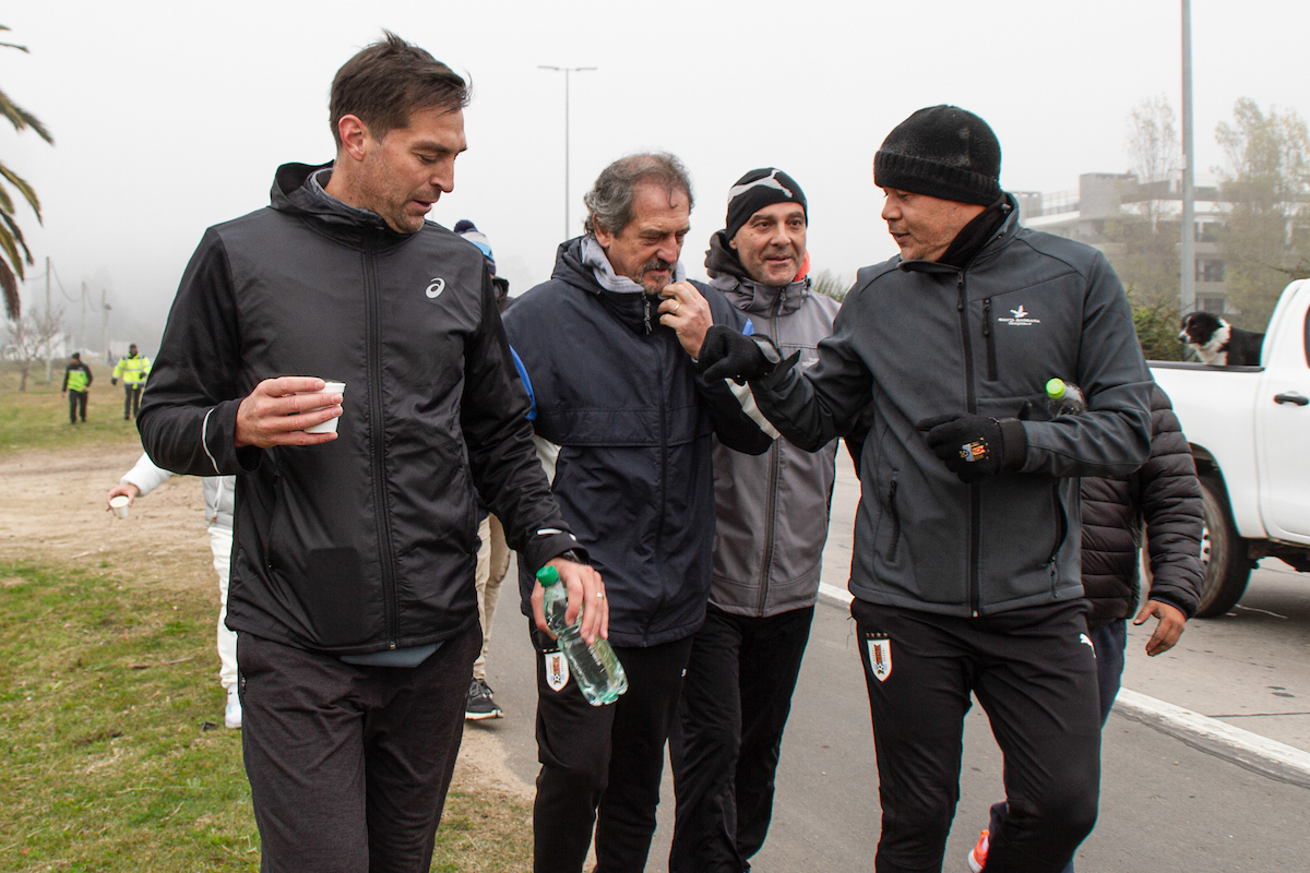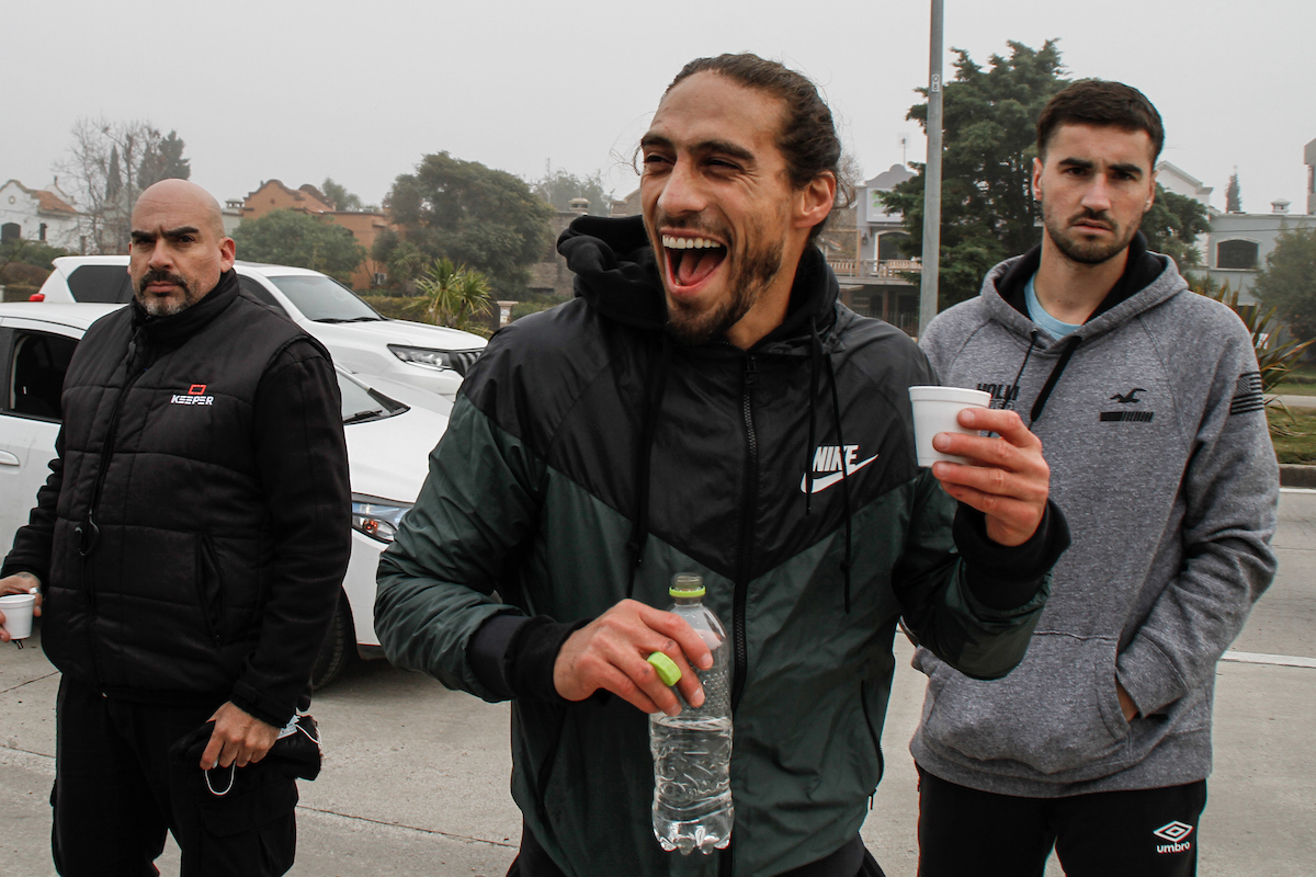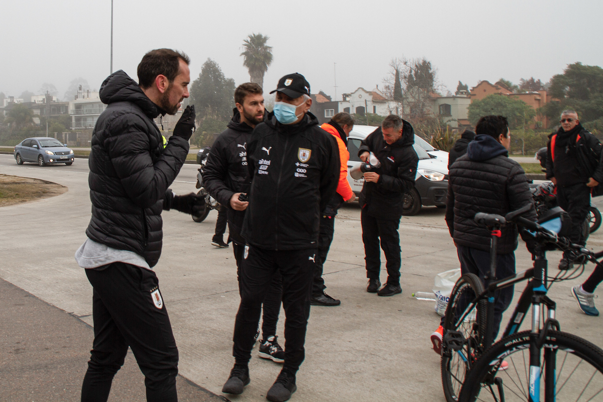 Desde el monumento histórico del fútbol mundial, el plantel en su totalidad, jugadores, cuerpo técnico, staff y colaboradores en general, partió la caravana en bicicleta hasta el Parque Roosevelt. Allí, dejaron el pedal y continuaron caminando hasta el Complejo Celeste.